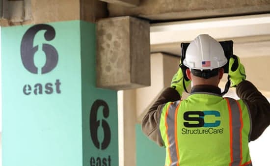 Structural engineer inspecting parking garage